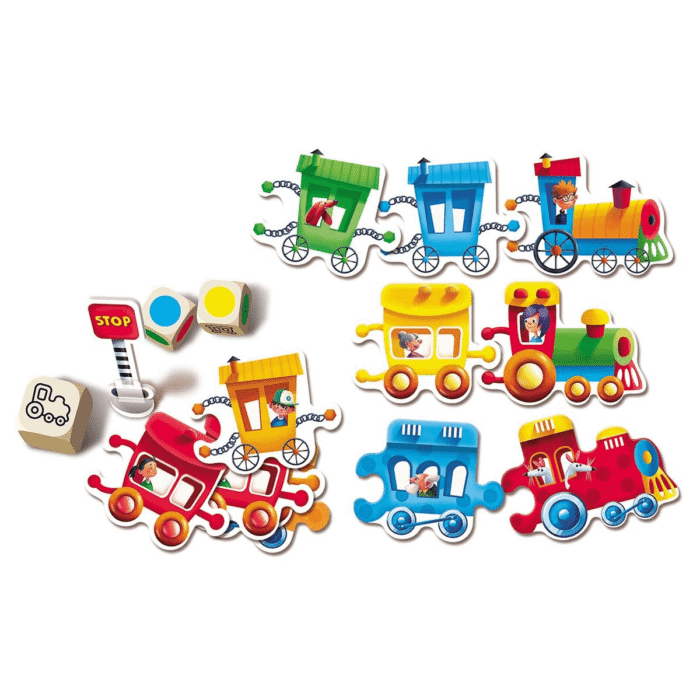 Too-Too-Catch ist ein exklusives und rasantes Kinderspiel, ideal für 2 bis 5 junge Eisenbahnfans ab 4 Jahren. Der Spielspaß dauert nur etwa 10 bis 15 Minuten und konzentriert sich darauf, die Farbkombinationen der gewürfelten Züge blitzschnell zu erkennen und darauf zu reagieren. Spieler bauen ihre eigenen Züge, indem sie Waggons an die Lokomotiven anlegen. Wer zuerst eine passende Farbkombination auf dem Tisch entdeckt, darf den Lokomotivwürfel ergattern und im besten Fall die Waggons gewinnen. Dieses Spiel trainiert auf spielerische Weise die schnelle Farberkennung und Reaktionsfähigkeit der Kinder – wer am meisten Waggons sammelt, gewinnt das rasante Duell am Gleis!