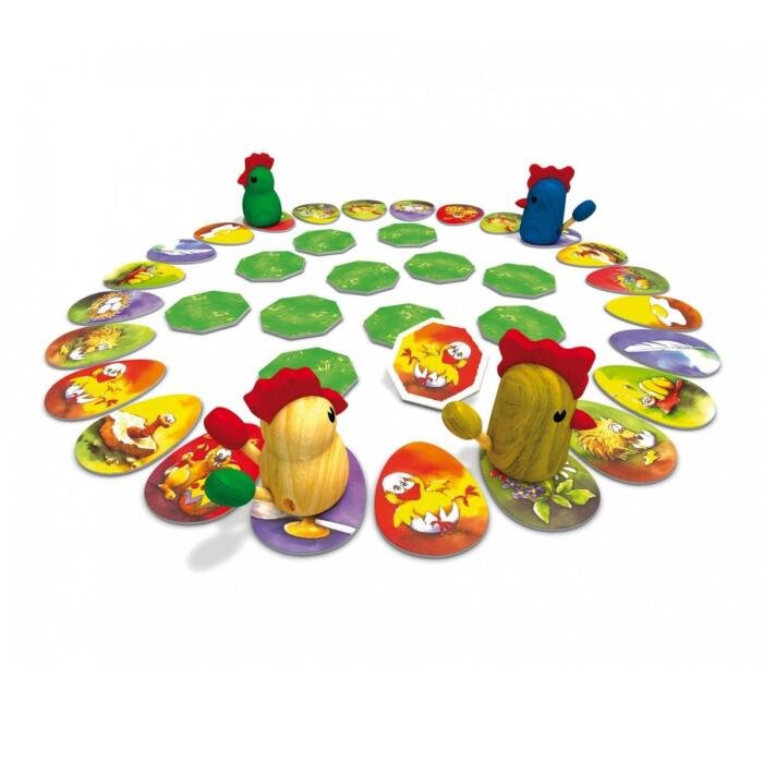 Zicke Zacke Hühnerkacke ist ein Klassiker unter den Kinderspielen und begeistert seit über 25 Jahren mit einfachen Regeln und großem Spielspaß. Bei diesem Gedächtnisspiel werden Hühner rund um einen Hühnerhof bewegt – doch voranschreiten darf nur, wer das richtige Motiv unter den verdeckten Plättchen aufdeckt. Das innovative Spielmechanik kombiniert Memory-Elemente mit einem aufregenden Wettbewerb: Wer sein Huhn geschickt vorwärtsbringt und ein anderes Huhn überholt, darf diesem alle Schwanzfedern ausrupfen und sich selbst anstecken. Ziel ist es, als Erstes alle Federn der Mitspieler zu sammeln und damit zum Sieger zu werden.